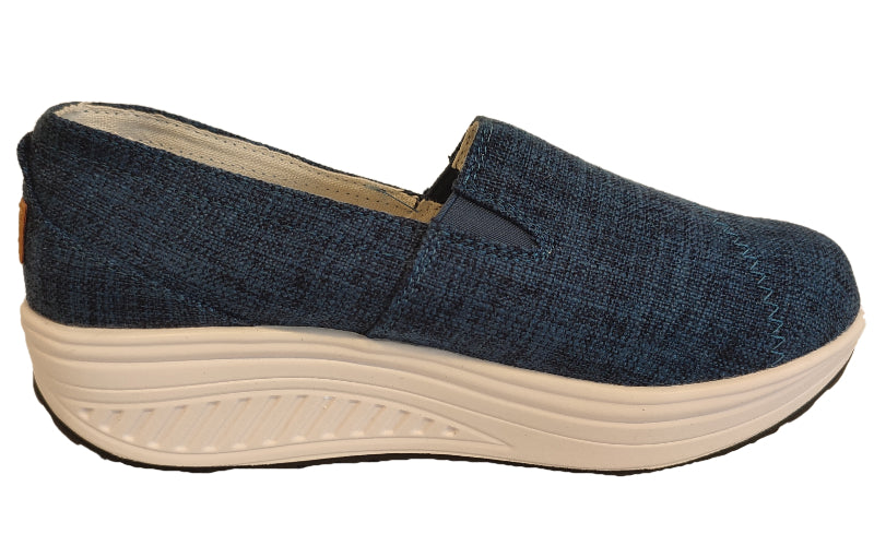Cómoda zapatilla con plataforma y fresca capellada de lona, combinable con innumerables outfits y para todas las temporadas. Liviana y fácil de ajustar con plantilla interior de cuero que permite frescura y comodidad al andar.